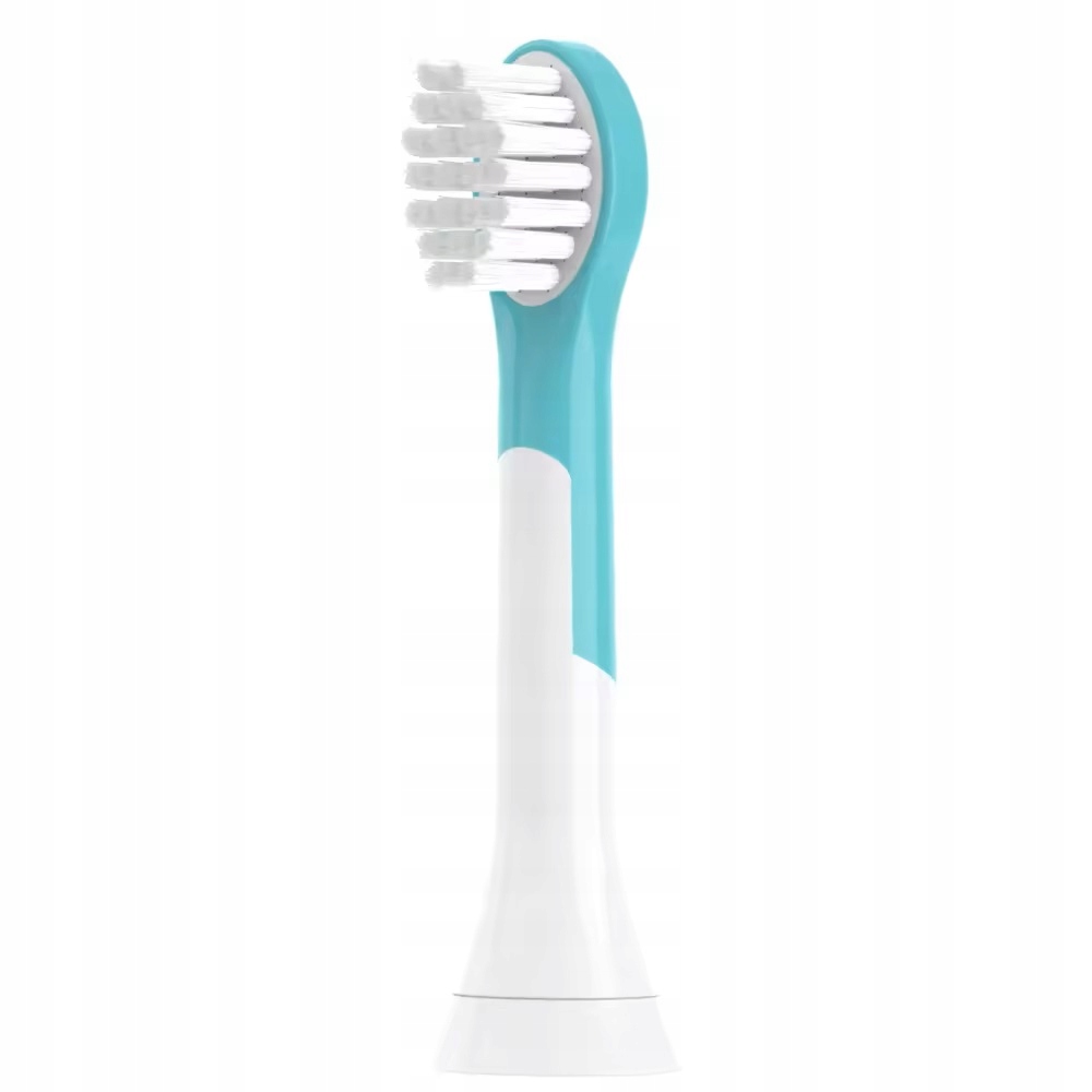 Standardowa końcówka szczoteczki Philips Sonicare For Kids ma wyprofilowany kształt, który dopasowuje się do zębów dzieci od 3 roku życia, a także miękkie włókna, które umożliwiają łagodne czyszczenie. Z tyłu końcówki szczoteczki znajduje się gumowy element, który gwarantuje bezpieczniejsze, przyjemniejsze szczotkowanie.